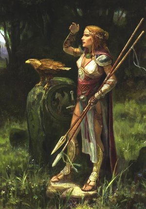 В религии - поклонение Великой Матери причудливо смешалось с десятками и сотнями "духов", которых ранее уговаривали и задабривали шаманы, что породило целый пантеон богинь и богов. Главная богиня - разумеется Великая Мать, ассоциируемая либо с землёй, либо с создательницей всего сущего. Во главе пантеона также воительница-громовержица, богиня-солнце, богиня охоты, богиня смерти, и т.д. А вот исцелением там, или урожаем - заведуют боги-мужчины. Не воинам же целебные корешки искать и в огородах копаться. Соответственно, на место шаманов приходят многочисленные жрицы и жрецы. Жрецов мало. Даже богам-мужчинам чаще служат жрицы, совершенно правильно оценивая все преимущества своего положения. Разве что бог плодородия (с приапического вида идолом) по самой природе своей жриц не терпит.